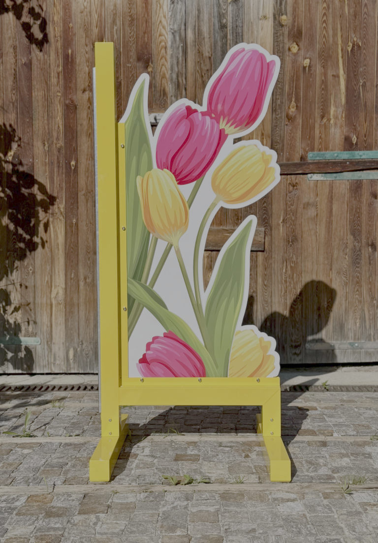 Für maximale Individualität bieten wir zusätzlich formgeschnittene 2D-Platten, die passgenau in die Aluminium-L-Rahmen eingesetzt werden. Form und Farbe lassen sich individuell gestalten